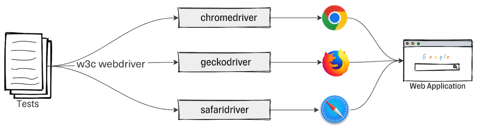 Привет! Я Павел Лобач из команды инфраструктуры тестирования Т-Банка. Расскажу, как у нас организована инфраструктура для запуска E2E браузерных тестов, как она развивалась и как в итоге вылилась в открытый проект Selebrow. Будет много технических подробностей и ни слова про ИИ! E2E-тесты и как их запускаютE2E-тесты (end-to-end, или сквозные, тесты) занимают вершину пирамиды тестирования. E2E — наиболее комплексные и ресурсоемкие тесты, которые проверяют всю систему от начала до конца, включая взаимодействие всех компонентов и пользовательский интерфейс. Суть E2E-тестов в том, чтобы взаимодействовать с тестируемым приложением так, как это делал бы пользователь, и оценивать результат. А пользователь взаимодействует с веб-сервисами, используя браузер, поэтому идея запустить из кода тестов браузер и как-то его заставить автоматически взаимодействовать со страницей кажется здравой. Как делали деды. Исторически для автоматизации браузерных тестов использовался фреймворк Selenium, а для мира Node.js есть Webdriver.IO. Selenium общается с браузером, используя протокол Webdriver, который почти стал стандартом W3C, но так и остался вечным черновиком. Вот только браузеры не понимают Webdriver, и поэтому нужна прокладка, называемая драйвером: для Chrome — chromedriver, для Firefox — geckodriver, для Safari — safaridriver. Тестовый фреймворк запускает процесс-драйвер и взаимодействует с ним по протоколу Webdriver. Драйвер запускает браузер и управляет им, используя свой внутренний протокол.