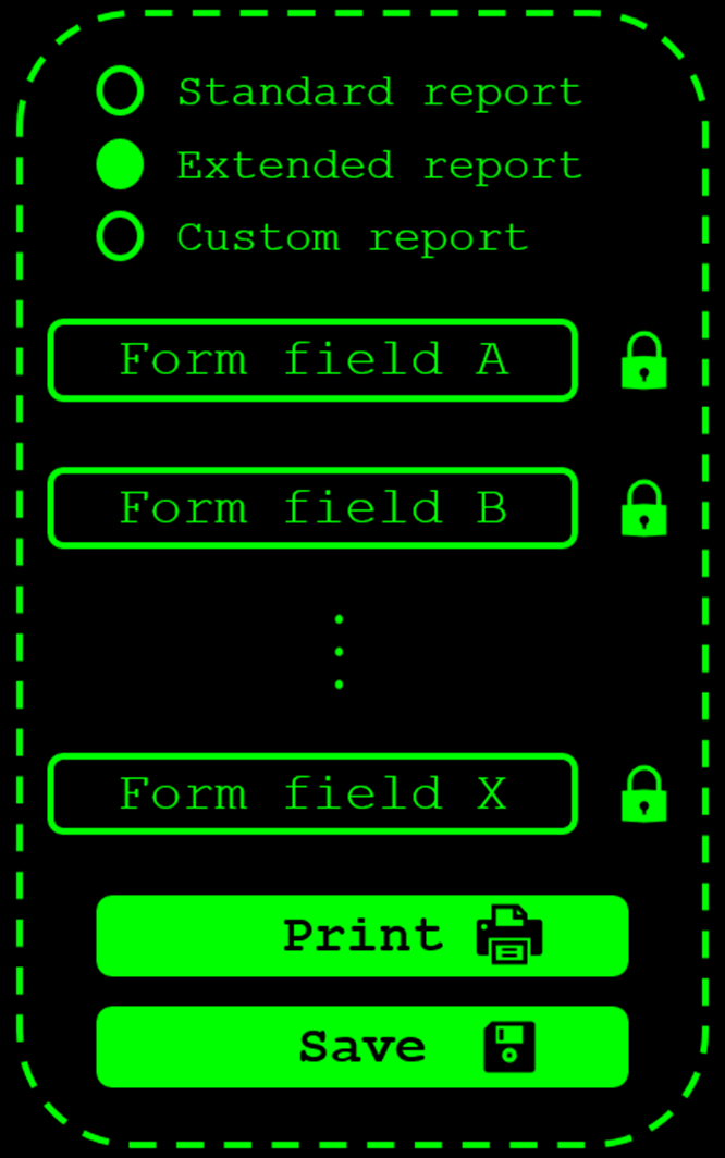 Уже значительно лучше с точки зрения читаемости и принципа «показывай поведение, скрывай реализацию». Кстати, применение этого принципа вовсе не уникально для UI-автоматизации или даже тестирования в целом. Этот принцип называется инкапсуляцией и является одним из фундаментальных принципов объектно-ориентированного программирования. Это принцип, который полезно знать при написании тестового кода, если вы хотите, чтобы ваш код оставался читаемым. Итерация 2 — добавление возможности задавать права доступа для каждого поля формыНа следующем этапе мы решили добавить возможность задавать права доступа для каждого текстового поля. Как объяснено и показано в графическом представлении формы в начале статьи, у каждого поля стандартной формы есть кнопка блокировки, которая открывает небольшое диалоговое окно, где пользователь может выбрать, какие роли пользователей могут и не могут видеть поле отчёта. Изначально мы думали просто добавить дополнительные поля в Page Object, представляющий стандартный отчёт. Однако это привело бы к множеству повторяющейся работы и к тому, что стандартный отчёт имел бы много полей с локаторами элементов. Поэтому мы решили рассмотреть возможность объединения текстового поля отчёта и связанной с ним кнопки блокировки как Page Component, т.е. отдельного класса, который инкапсулирует поведение группы связанных элементов на конкретной странице. Настройка этого в переиспользуемом виде будет гораздо проще, если HTML этих Page Components имеет одинаковую структуру по всему приложению. Хорошая новость в том, что это часто так и есть, особенно когда дизайнеры и фронтенд-разработчики создают и реализуют интерфейсы с использованием инструментов вроде Storybook. Соответствующая часть HTML для стандартной формы может выглядеть так (опять же, упрощённо): <div id="standard_form"> Пример переиспользуемого класса Page Component может выглядеть примерно так: export class ReportFormField {
