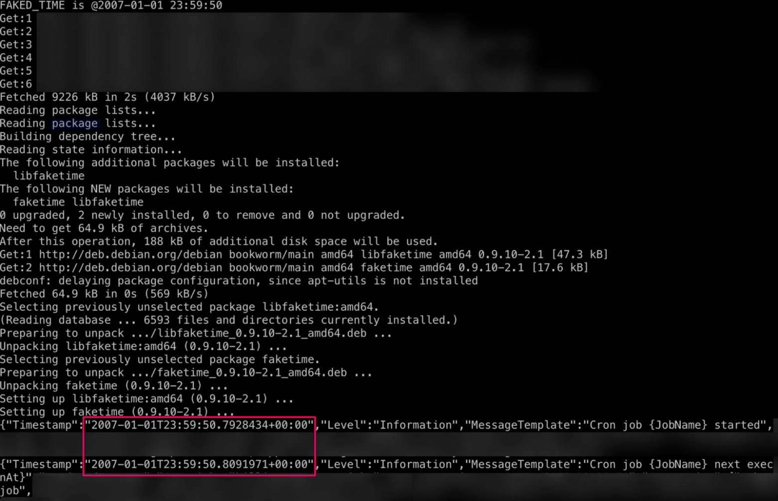 Все что нам осталось, это запустить деплой командой И вот у нас снова 2007. Как мы видим, время в контейнере не фиксированное и изменяется с его течением, что отражено в логах