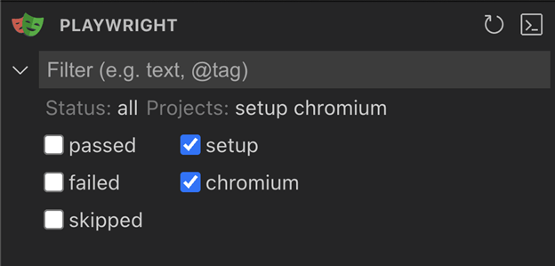 Обратите внимание, что если вы хотите запускать тесты в режиме --ui, нужно убедиться, что проект setup включён в список проектов, иначе он будет пропущен. Это может быть очевидно для опытных пользователей, но мне при первой настройке это не сразу пришло в голову (в headless-режиме всё работает нормально, так как там по умолчанию запускаются все проекты).