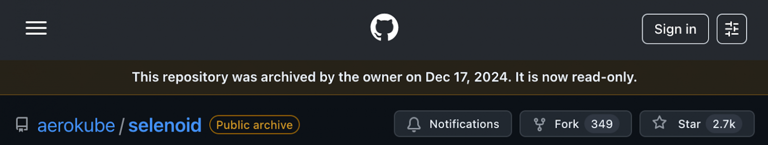 А еще Playwright из коробки предоставляет сборку мини-браузера на основе Webkit, позволяя запускать тесты «почти на Safari» на платформах, отличных от macOS, и возможность удаленного запуска браузеров тоже в наличии. Звезды сложились так, что Playwright признали перспективным и предпочтительным фреймворком для написания E2E-тестов внутри нашей компании и появилась необходимость реализовать его поддержку в браузерной ферме. Внезапно оказалось, что изначальная реализация Selebrow получилась настолько легко расширяемой, что задача была сделана практически «еще вчера». Для подключения браузерной фермы в конфигурации Playwright-проекта нужно всего лишь указать параметр connectOptions. Прощай selenoidНа этом наша «история успеха» не заканчивается: до сих пор мы не принимали во внимание технологии, которые пользователи применяют для запуска тестов локально. Общей фермы-то больше нет, а запустить тесты «как в CI» может быть необходимо. Например, для скриншотных тестов. До всей истории с Playwright в качестве локального решения мы предлагали использовать старый добрый selenoid с нашими имиджами. Но selenoid не умеет в Playwright, а просто запускать Playwirght тесты локально — почти гарантированно получить расхождения в скриншотах из-за зоопарка пользовательских устройств (Windows, macOS). Кроме того, проект selenoid был заархивирован и больше не развивается с конца 2024 года.