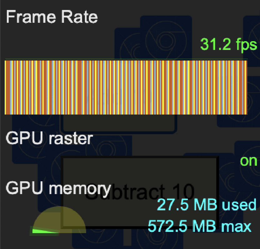 К слову, утилита отвечает не только за FPS, хотя это и её главная функция. Разберём оставшиеся. GPU rasterМетрика показывает значение флага GPU rasterization. Если по-простому, то включение этого флага увеличит производительность вашего сайта за счёт более высокого потребления ресурсов графического процессора. У меня этот флаг находится в режиме on. Включается (и выключается) он следующим образом: