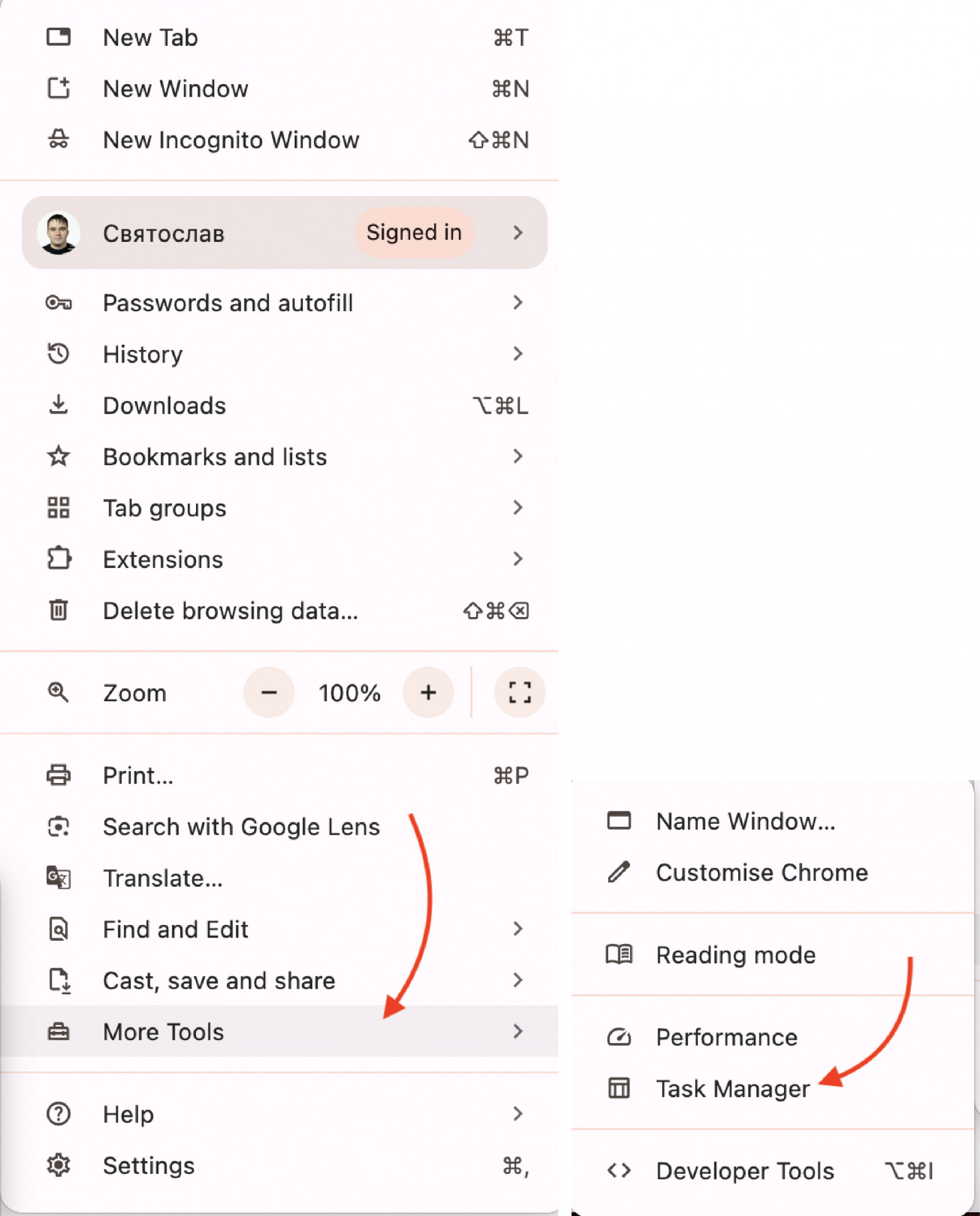 Вот тут начались действительно большие проблемы: просадка почти на 50 %. Chrome Task TrackerМы научились смотреть в динамике нагрузку на процессор, а также FPS и нагрузку на видеокарту в моменте. И я расскажу ещё об одном инструменте для мониторинга в том числе и текущего потребления RAM (оперативной памяти) вкладкой. Речь о Chrome Task Tracker. Чтобы войти в него, нажмите на три вертикальные точки в правом верхнем углу экрана, выберите More Tools, затем Task Tracker.