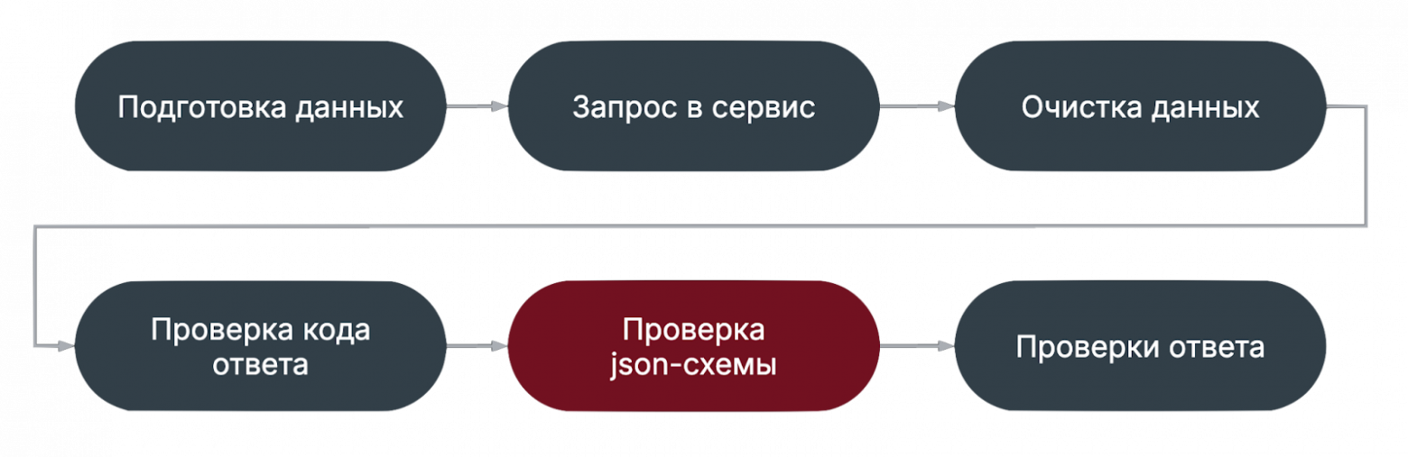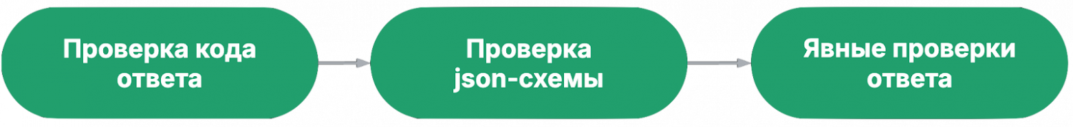 Мы движемся от простой проверки к более сложным. Грубо говоря, если код ответа не ожидаемый, то дальше проверять смысла нет. Проверка json-схемы ответаНа этапе проверки схемы проверяются следующие вещи