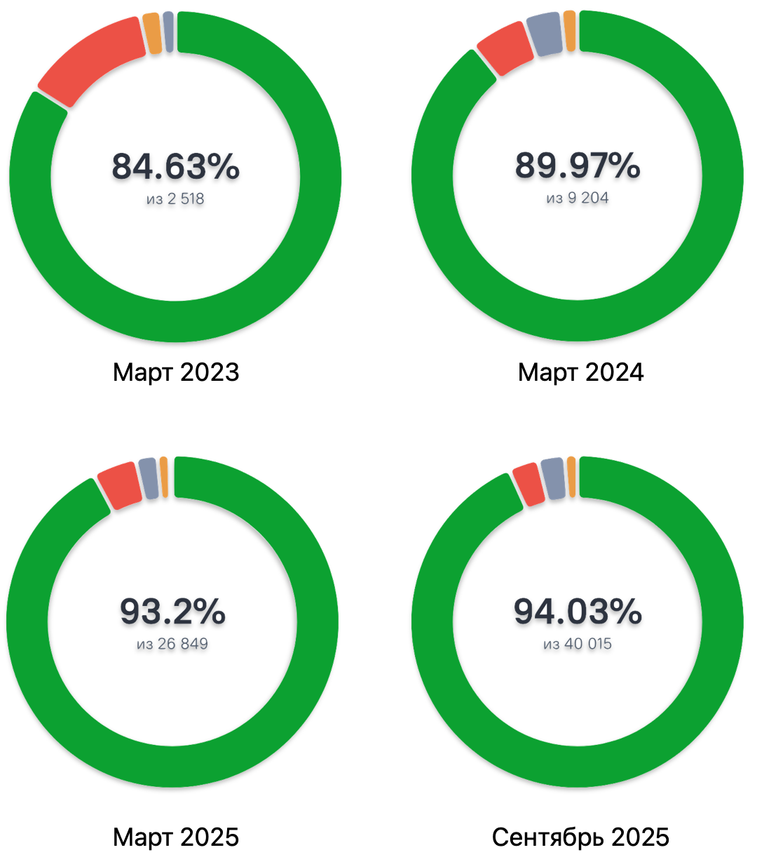 Как ТМС мы используем Testops. Он позволяет просматривать данные по запускам, хранит данные запросов и ответов из тестов неделю, а статистику прохождения тестов условно вечно. Мы ежедневно следим за актуальностью наших тестов: