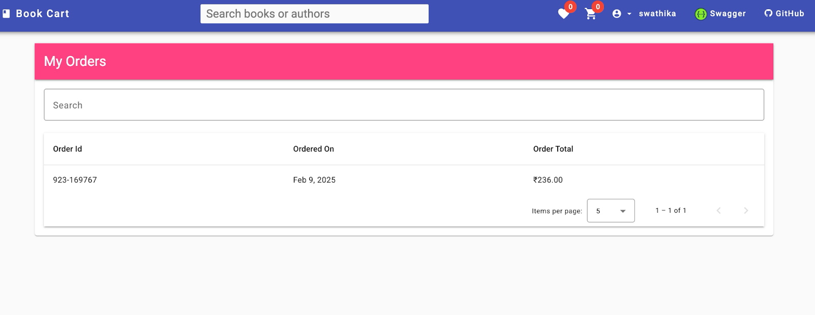 Что дадут эти рецепты вашему тестированию?Независимо от того, какой инструмент автоматизации тестирования вы используете, хорошей практикой всегда будет повторное использование состояния входа для ваших тестов, если это возможно. Другими словами, каждый раз, когда вы запускаете тест для конкретного пользователя, вы повторно используете его состояние входа. Это похоже на покупку годовой подписки на Netflix один раз вместо того, чтобы покупать месячную подписку 12 раз в году. Все методы аутентификации Playwright, описанные ниже, позволяют залогиниться один раз и эффективно переприменять это состояние входа во всех тестах. Это сэкономит время выполнения, уменьшит нестабильность и избавит от ненужного повторения: работайте умнее, а не тяжелее. Рецепт 1: Однократная аутентификация через UI и повторное использование состояния логинаЕсли взглянуть на сайт Book Cart, то у него хороший фронтэнд, который мы можем использовать для значимых тестов - входа в систему, добавления товаров в корзину, добавления в избранное и оформления заказов. Также он оснащён документацией Swagger, которую можно применять для API-тестов. Вы МОЖЕТЕ использовать этот рецепт, когда все ваши тесты могут выполняться параллельно с использованием одной и той же учётной записи без влияния друг на друга. Например, его можно применить, добавляя книги в избранное пользователя. В таком случае имеет смысл войти один раз и повторно использовать состояние входа во всех тестах. Существуют ситуации, когда этот рецепт использовать нельзя. Например, представьте, что на нашем учебном сайте Bookcart у вас есть тест, проверяющий страницу истории заказов, и другой тест, который проверяет элементы страницы, когда список заказов пуст (см. скриншоты ниже). В таких случаях необходимо использовать разные учётные записи для тестов, а это значит, что рецепт здесь НЕ ПОДХОДИТ. Однако для этого случая вы можете использовать Рецепт 2.