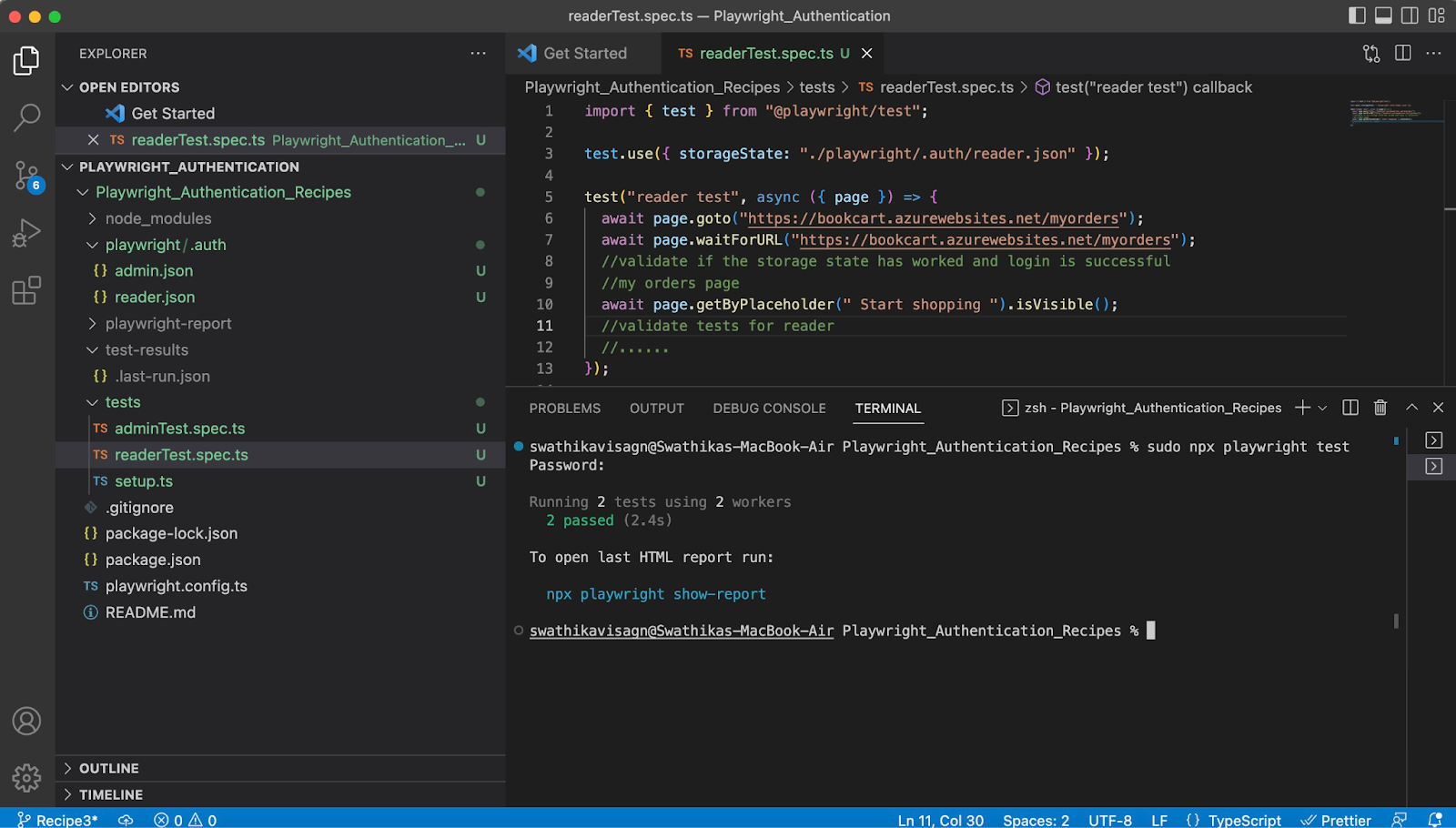 Результат рецепта 4После выполнения тестов, как и в рецепте 3, будут созданы два файла состояния хранения: один для админа, другой для читателя. Каждый тест будет использовать соответствующее состояние хранения. Единственное отличие в том, что в рецепте 4 мы используем состояния хранения обоих пользователей в одном тесте, тогда как в рецепте 3 состояния использовались в разных тестах. Подводя итогМы рассмотрели несколько техник аутентификации, которые можно реализовать с помощью Playwright. По моему опыту, каждая система уникальна, и стратегия автоматизации тестирования также зависит от приложения. Например, если ваше приложение не включает различные роли и права доступа, вы можете выбрать метод аутентификации соответственно. С другой стороны, если приложение поддерживает роли с разными уровнями авторизации, методы аутентификации и способы их использования в тестах будут существенно различаться. Надеюсь, эта статья дала вам ясное представление о том, как повторно использовать состояния аутентификации. Это экономит время выполнения на пайплайнах, что особенно важно при масштабируемости автоматизационной инфраструктуры! Я добавила эти рецепты в своё портфолио на GitHub, и они доступны на соответствующих ветках, чтобы избежать путаницы. Вы можете клонировать мой практический репозиторий и попробовать все примеры самостоятельно. Официальный сайт Playwright также предоставляет массу полезной информации и примеров кода, которые можно адаптировать под свои нужды. Приятного аппетита! Дополнительная информация |