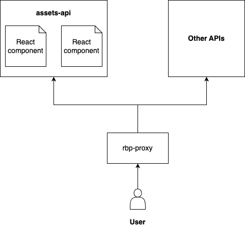 Схема 1: Изначальная архитектура restful-booker-platform. Пользователь подключается к rbp-proxy, который, в свою очередь, получает React-компоненты из assets-api. rbp-proxy также может подключаться к другим API. Эта архитектура была немного «костыльной» и вызывала проблемы с деплоем, поэтому её нужно было обновить. Я решил заменить её на NextJS — фронтенд-фреймворк, который позаботится о моих компонентах и всей маршрутизации. Проблема заключалась в том, что я ничего не знал о том, как работает NextJS. Так что это был идеальный проект, чтобы попробовать AI-инструменты для разработки, которые могли бы направлять меня в создании нового фронтенда и миграции старого бэкенда. Архитектура NextJS, которую я хотел создать, показана на схеме 2: